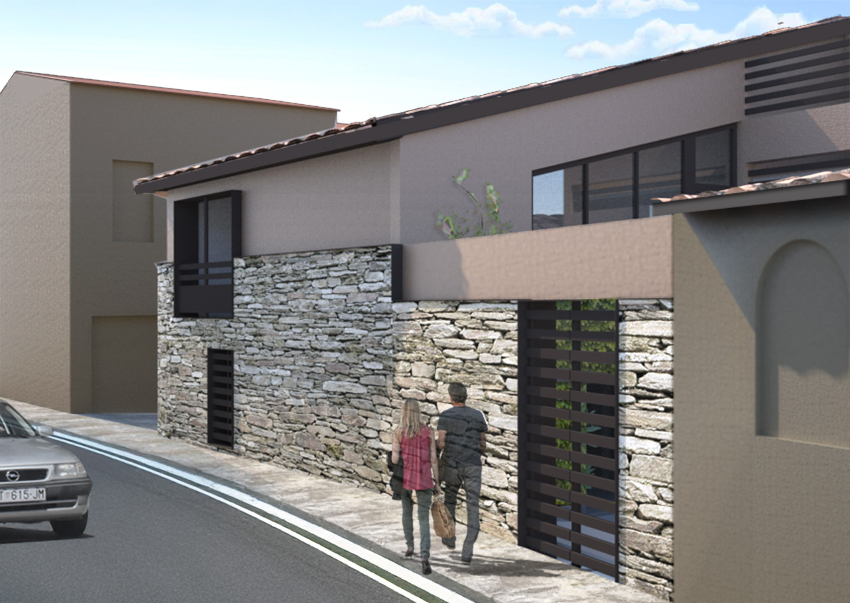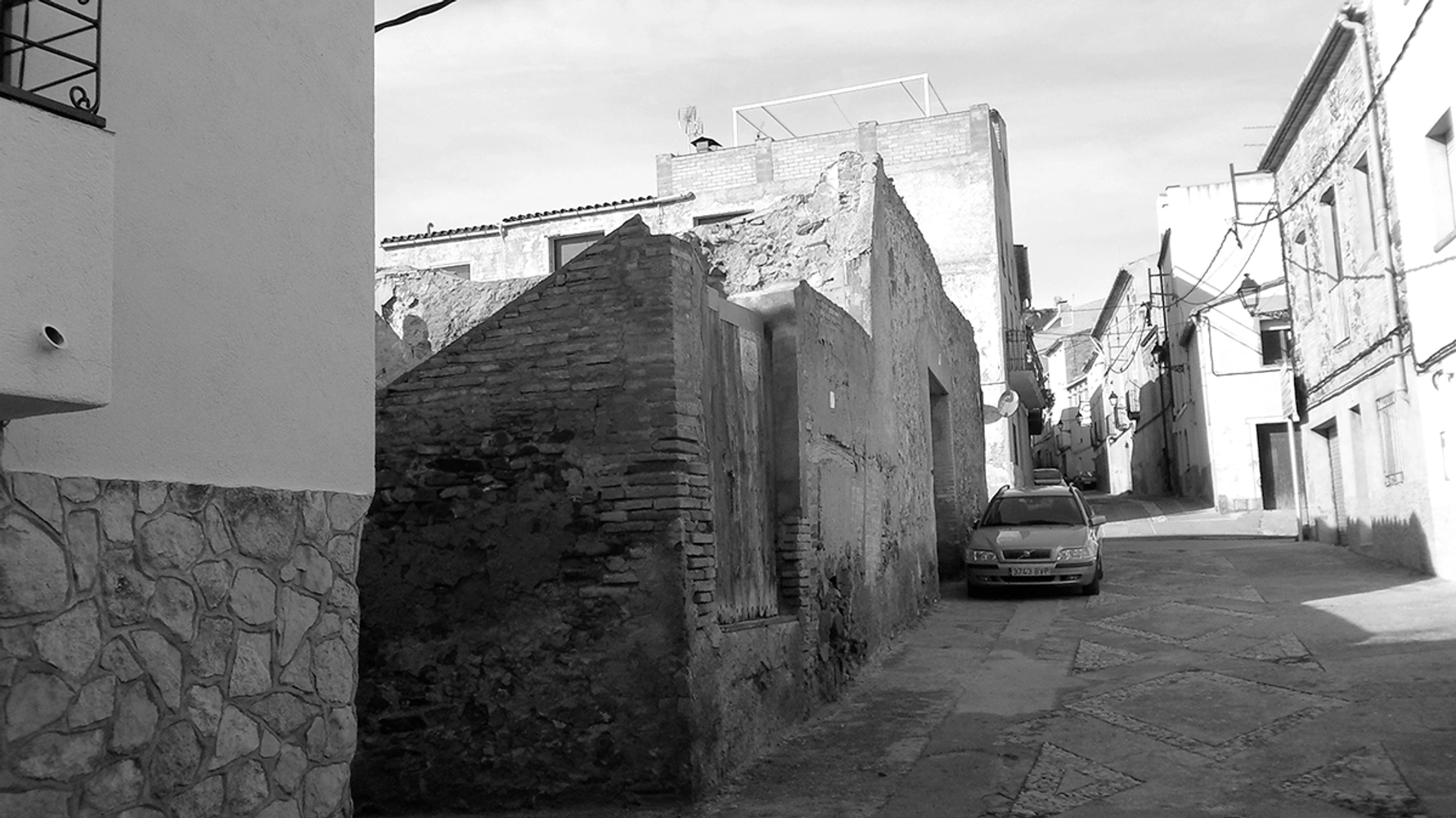 Un solar vacío en el casco urbano de un pequeño pueblo queda limitado por unos antiguos muros de piedra que fueron la fachada de un antiguo molino de aceite y que ahora actúan de valla de cerramiento. Éstos servirán como punto de partida de este encargo, una pequeña bodega familiar, puesto que se aprovecharán.
